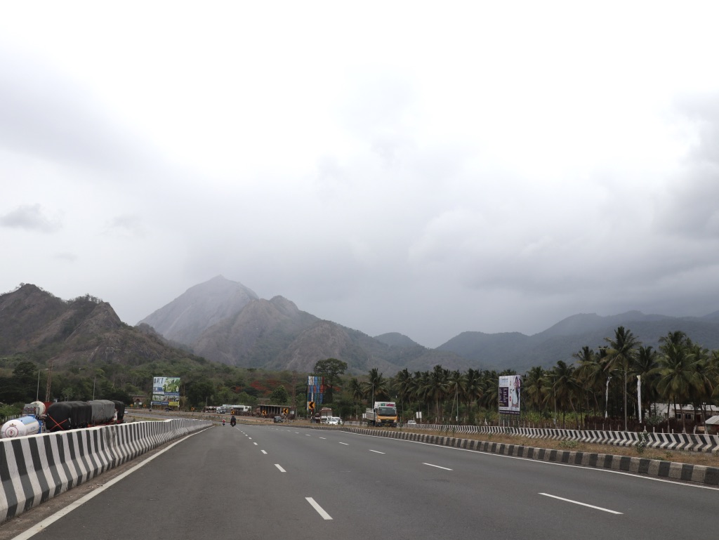 The sky was downcast by the afternoon yesterday, while I was driving back from Vellore. It was already raining in one of the mountain ranges.