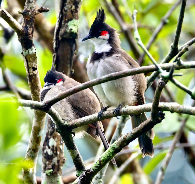 These two Bulbuls come to our rear veranda in the evening searching for food and stay there till they are offered food and water. In the mornings I find them hidden in the foliage often in the same site in the Bell fruit tree in our courtyard.